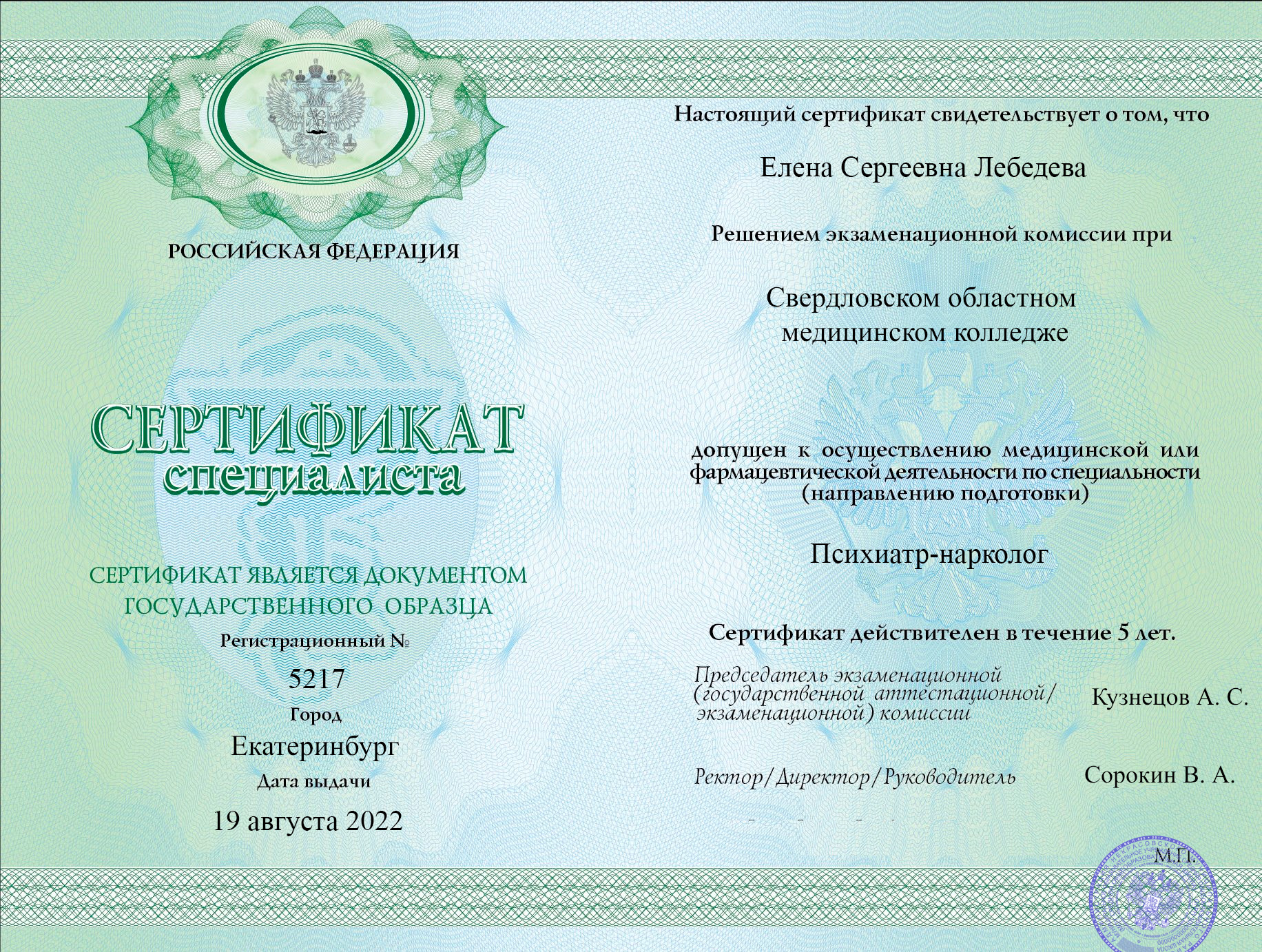 Елена Сергеевна Лебедева врач нарколог клиники доктора Стукаловой в Брянке